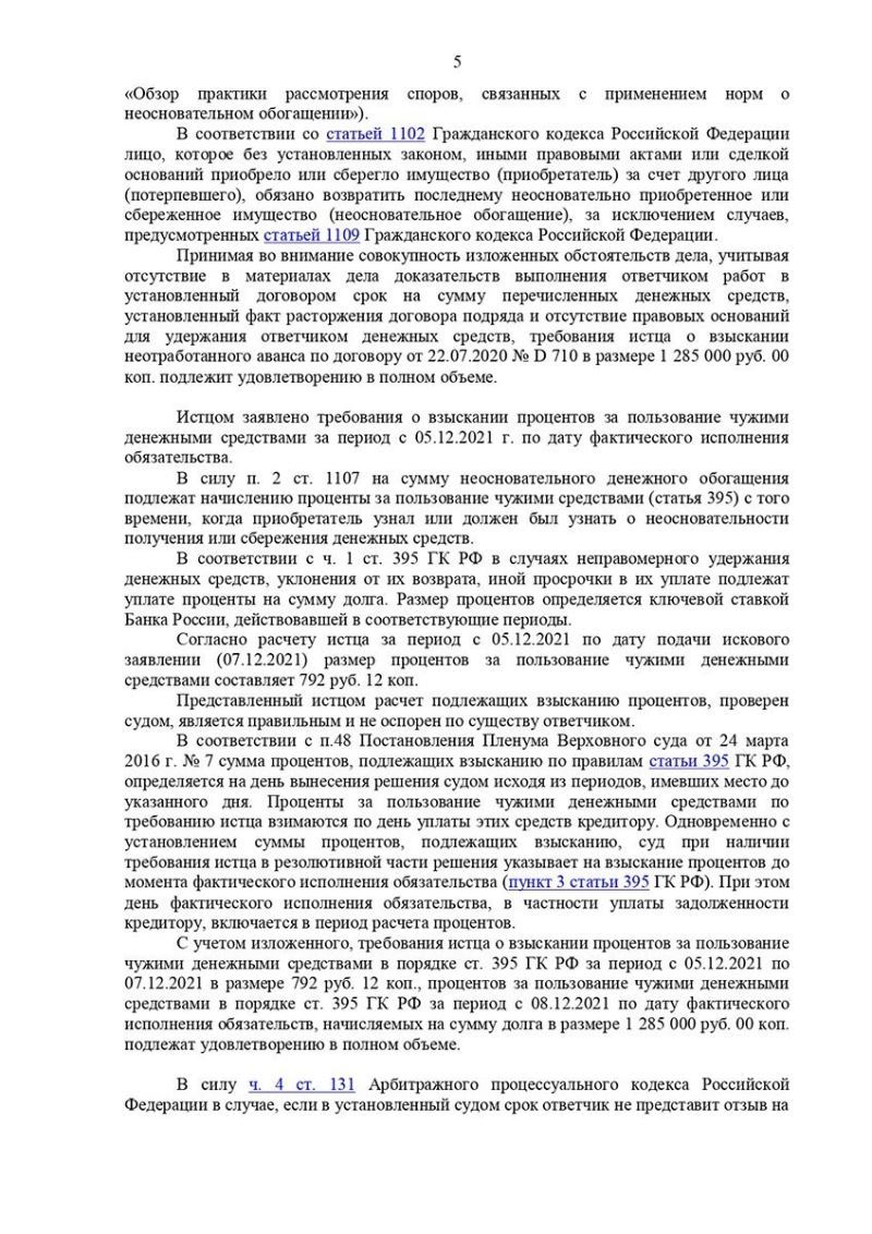 После заключения договора строительного подряда был перечислен аванс в размере 1 285 000 руб., однако, подрядчик уклонялся от исполнения договорных обязательств, но и денежные средства, при этом не планировал возвращать, ссылаясь на различные обстоятельства.