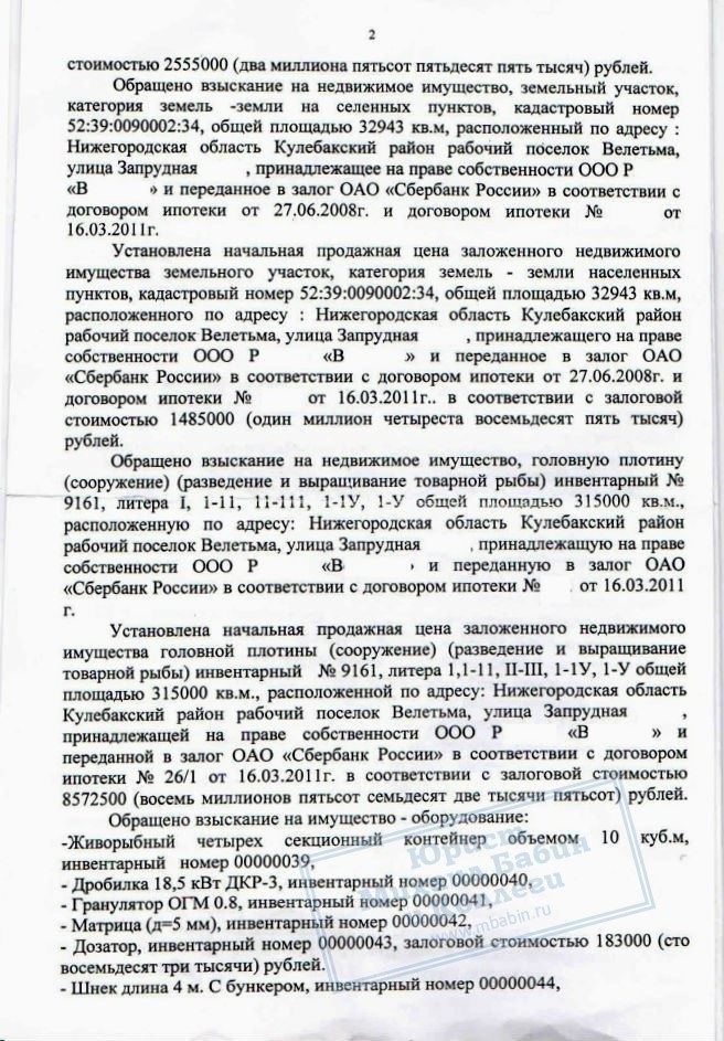 • Министерство сельского хозяйства Нижегородской области сняло запрет на реализацию продукции, что позволило ООО «Р.В.» возобновить хозяйственную деятельность и погасить долги.
