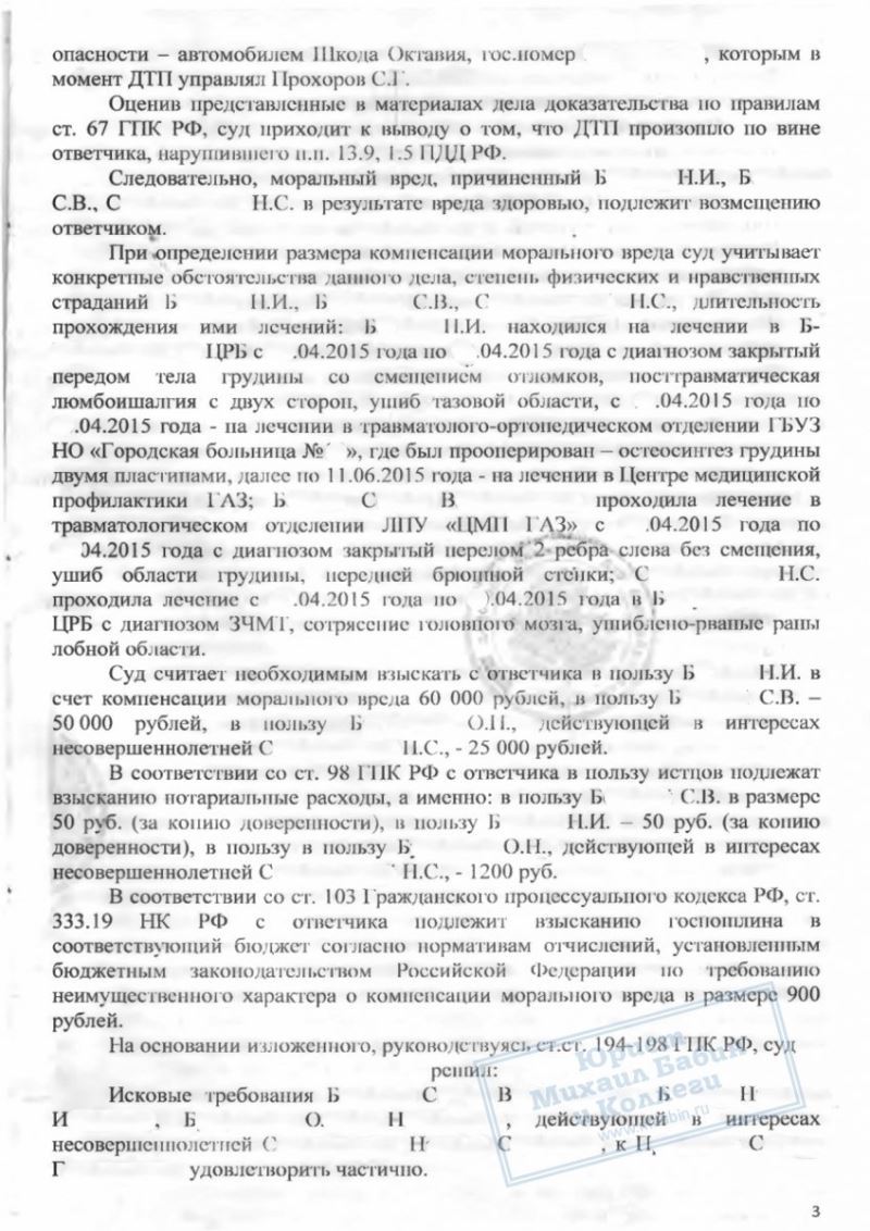 По вине П.С. на трассе произошло дорожно-транспортное происшествие, в которой пострадала семья из трех человек. Пострадавшие получили травмы средней и легкой степени тяжести и подали иск на взыскание с П.С. 800 000 руб. морального долга.