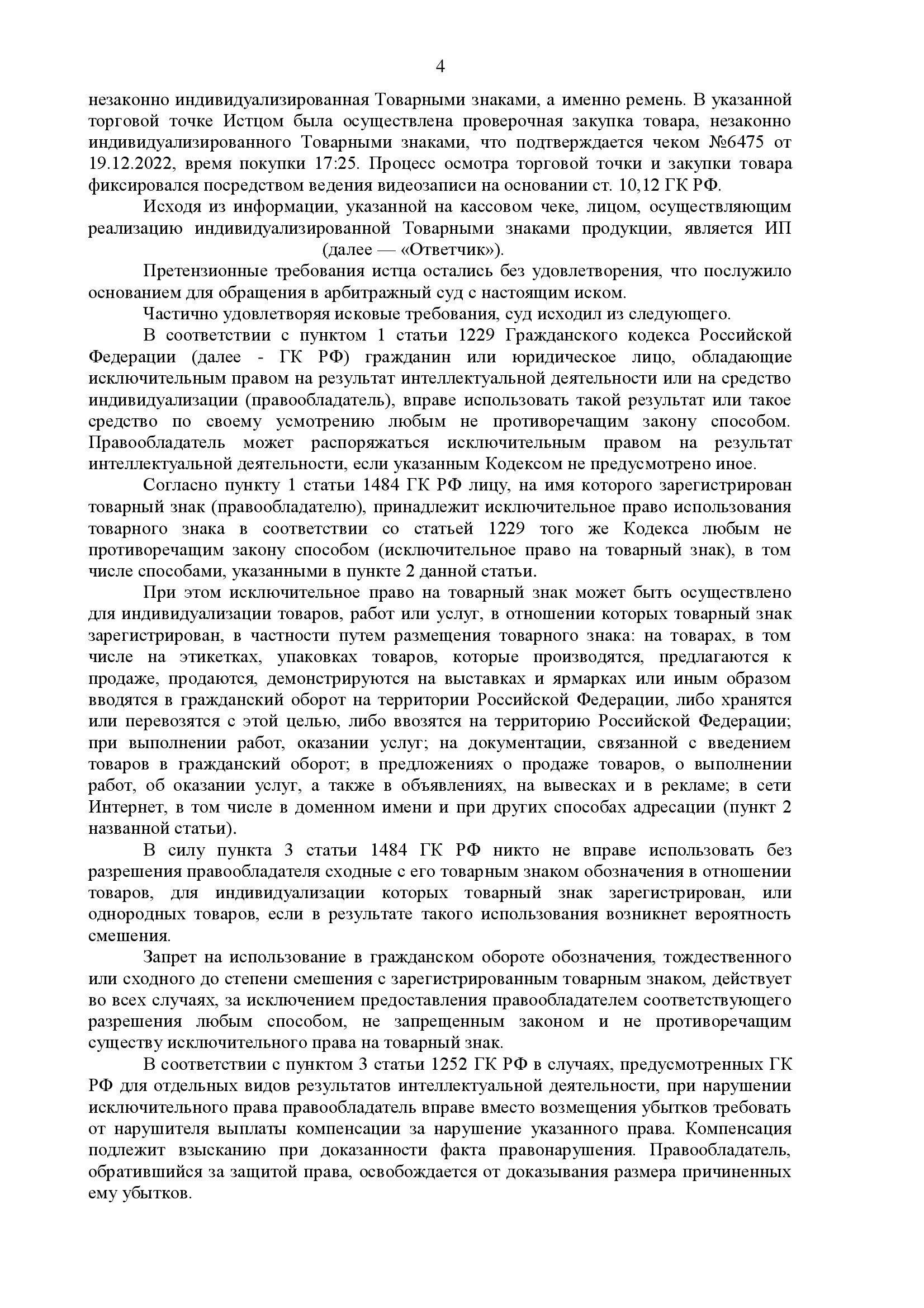 Истец (Levi Strauss & Co.) обратился в Арбитражный суд города Москвы с иском к ИП о взыскании 100 000 руб. компенсации за нарушение исключительных прав на 4 товарных знака. Основание — продажа в торговой точке в г. Москве ремня, на котором размещены обозначения, сходные до степени смешения с указанными товарными знаками. Ответчик заявил ходатайство о переходе к общим правилам искового производства, но суд отказал, рассмотрев дело в упрощённом порядке.