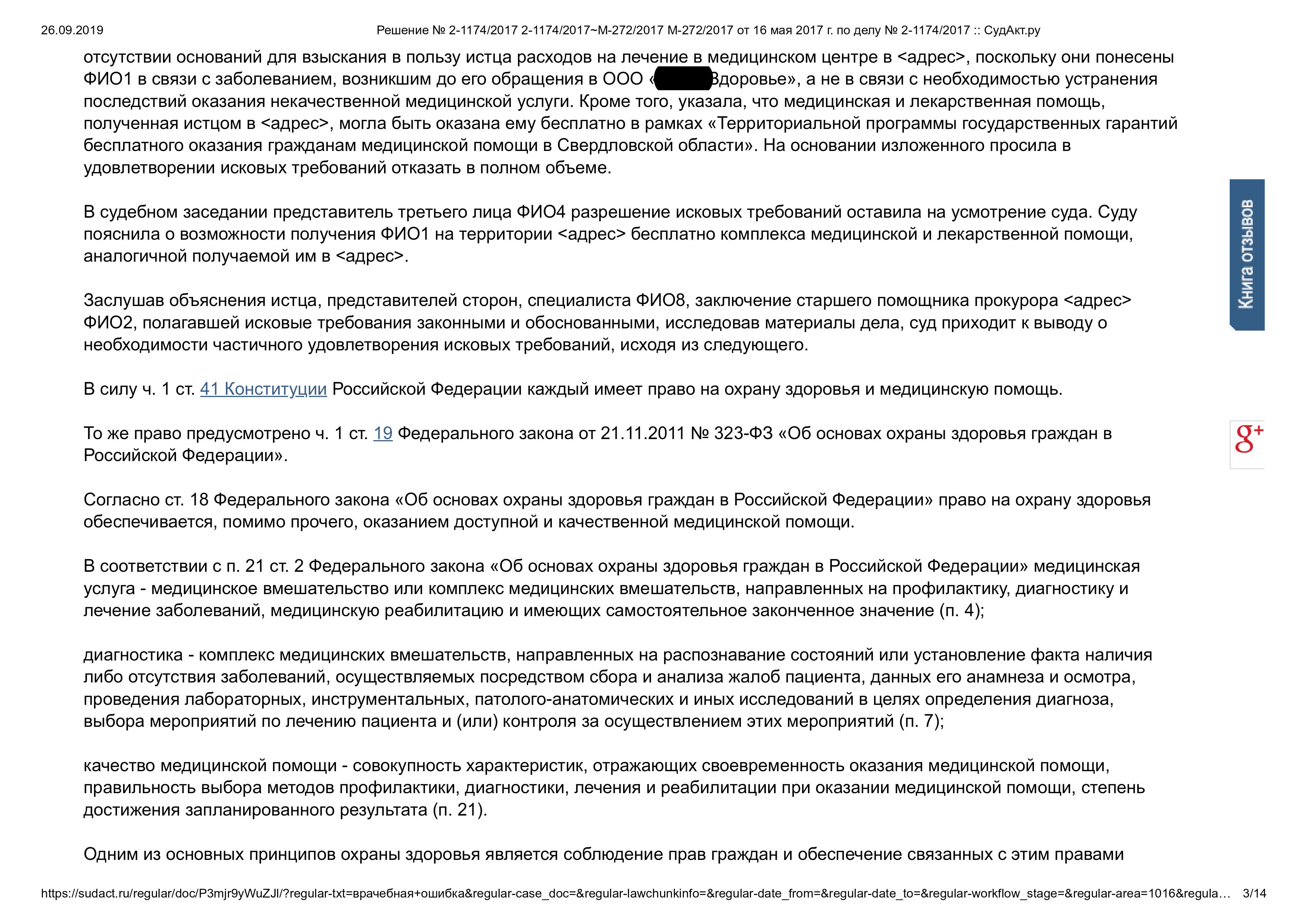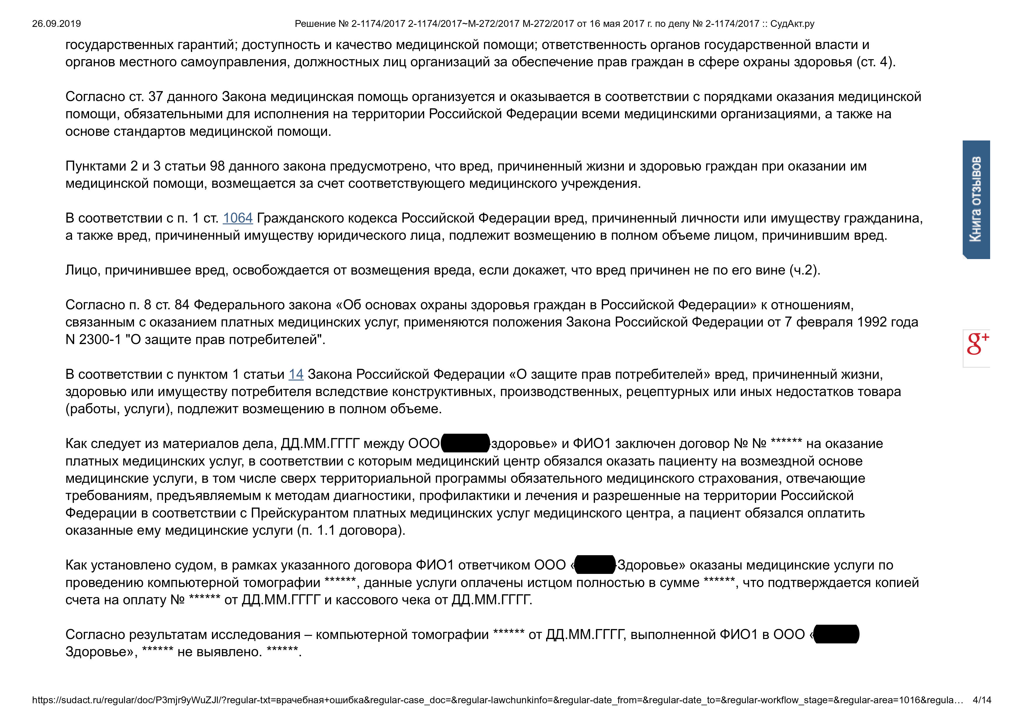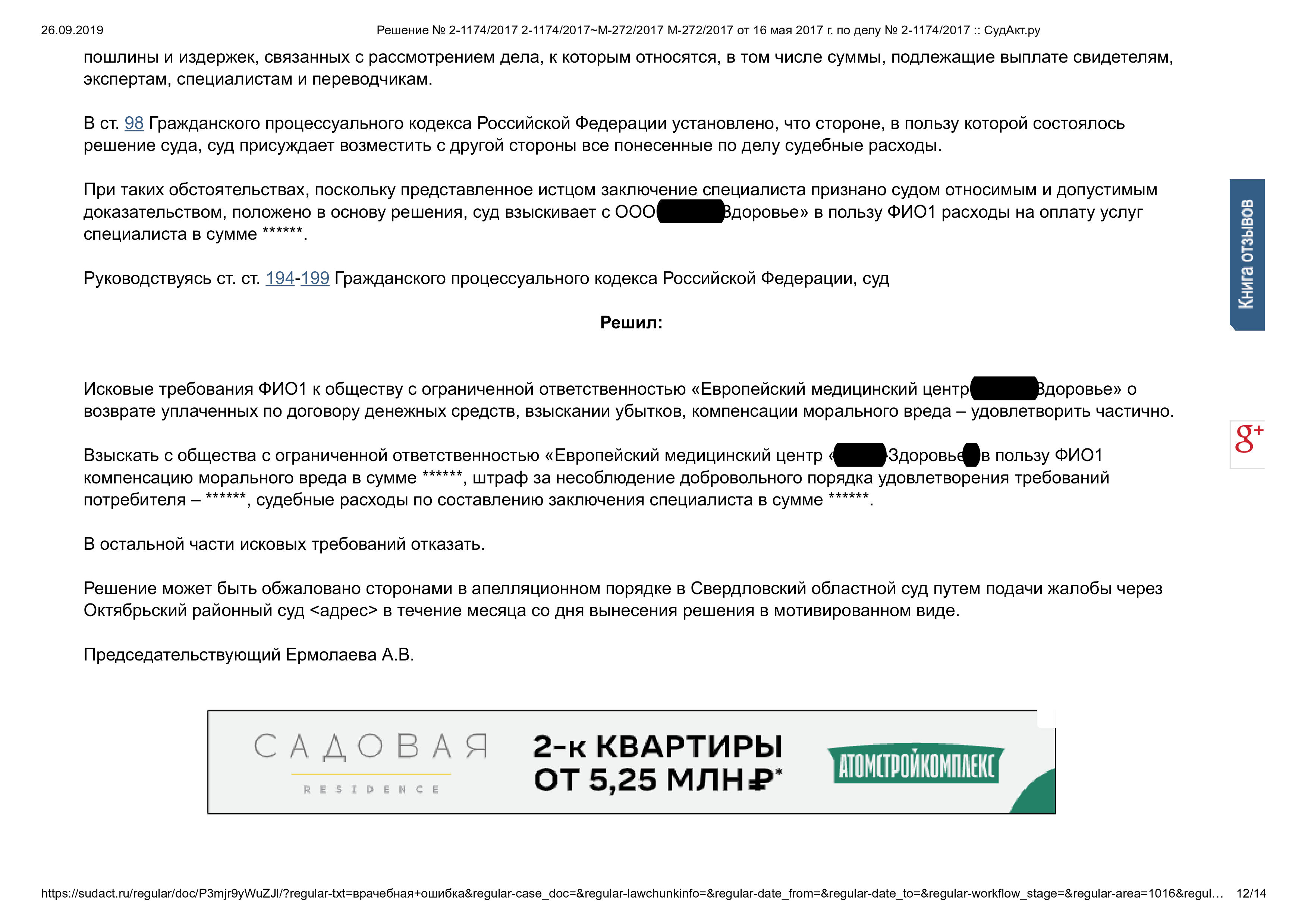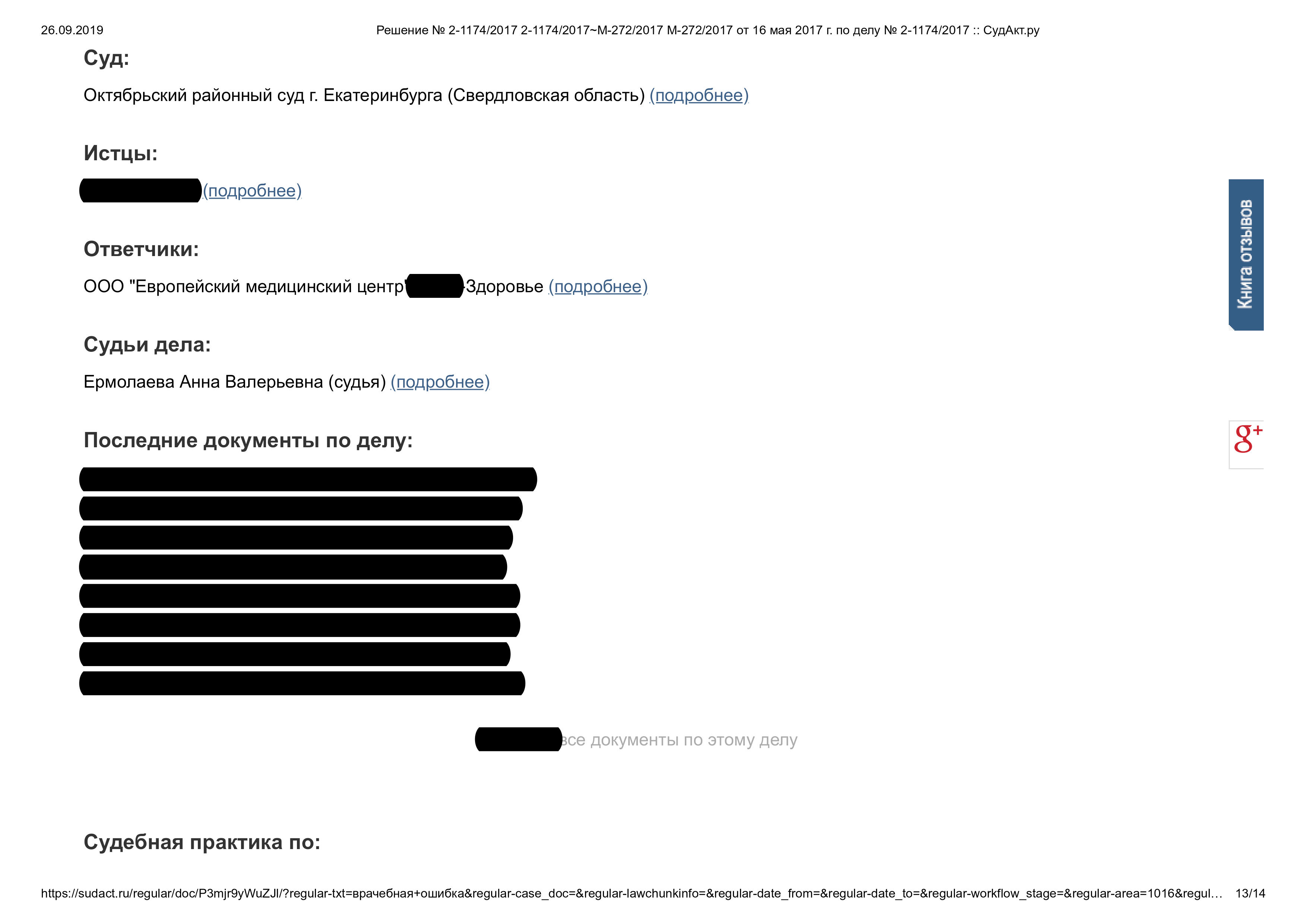 Главным козырем в деле стало заключение независимого специалиста. Оно подтвердило, что услуга была оказана с недостатками, а пациент из-за этого потерял драгоценное время для начала лечения.
