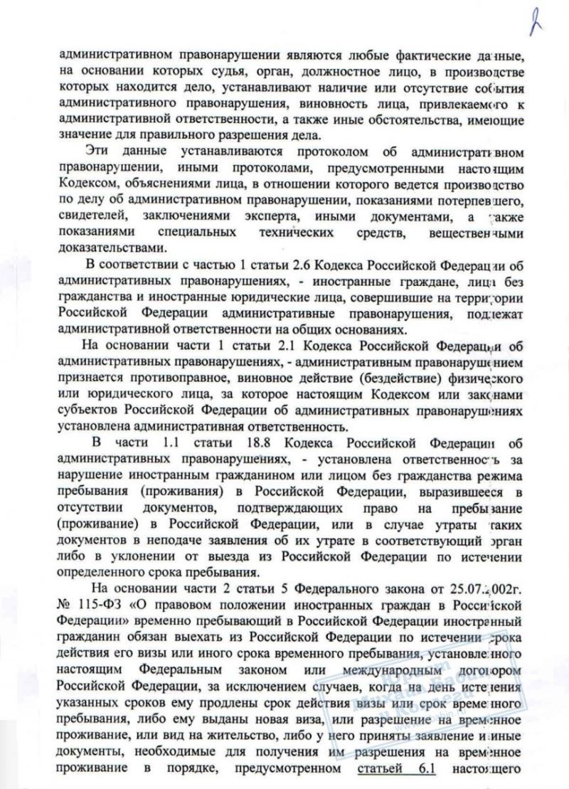 Административное выдворение заменено минимальным штрафом