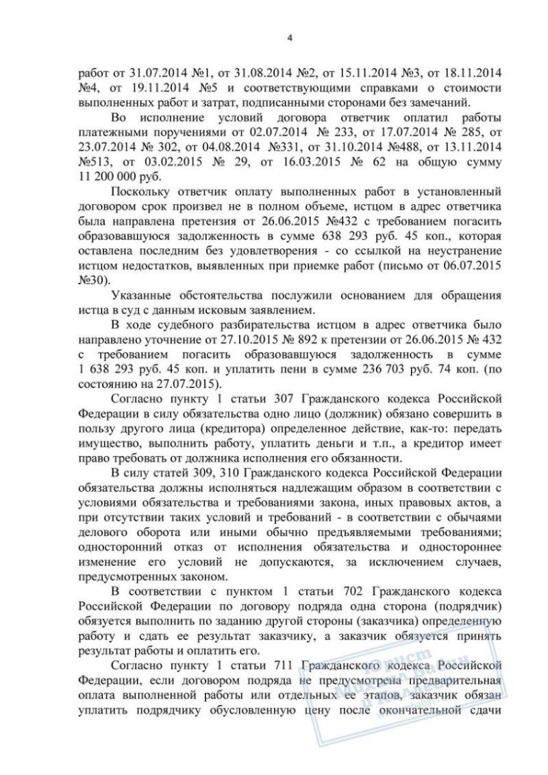 • Взыскана задолженность по договору строительного подряда
